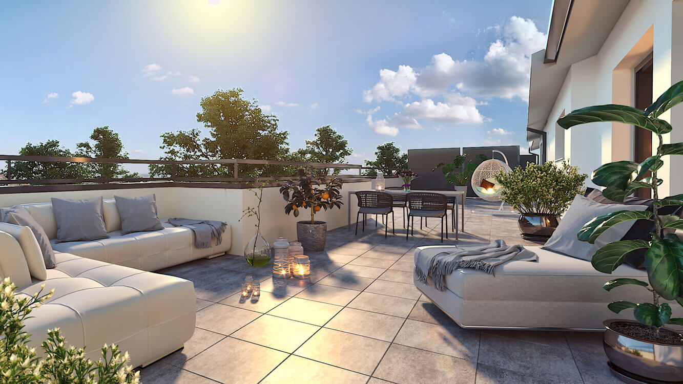 L’accent a été porté sur les espaces extérieurs avec un environnement paysager spacieux ainsi que la présence de terrasses, balcons, et jardins privatifs pour les appartement du rez-de-chaussée.