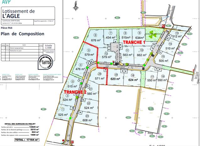Le lotissement « L’Agle » propose 18 terrains à bâtir à Artix. Leurs surfaces comprennent 348 m² à 696 m².