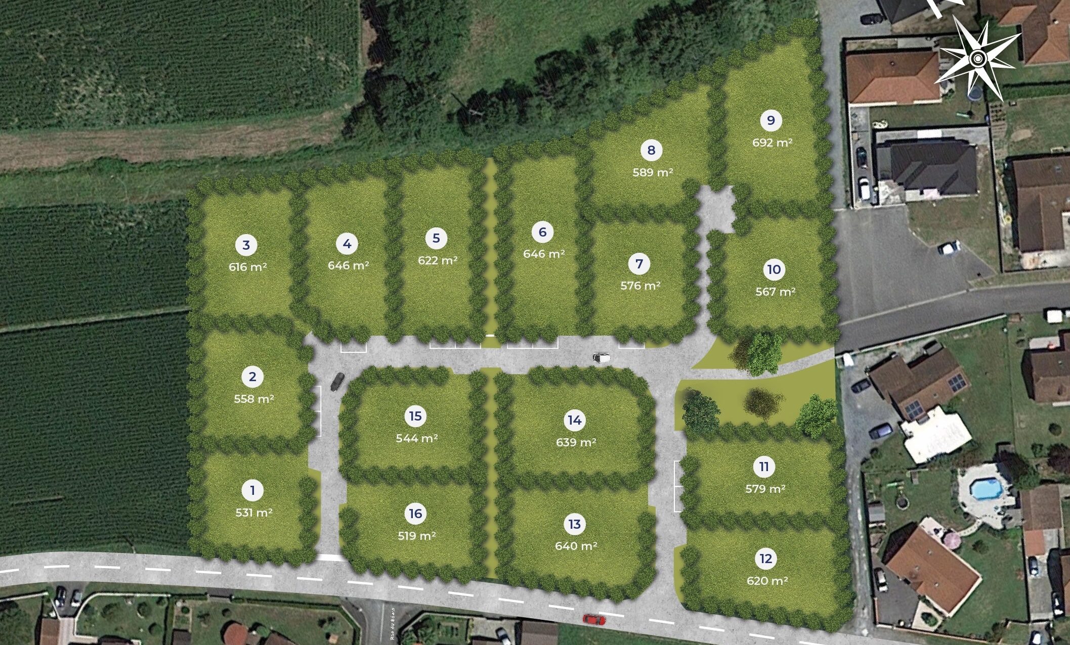 Le lotissement Lartigalot propose 16 terrains à bâtir à Aussevielle, avec des superficies comprises entre 519 m² et 692 m².