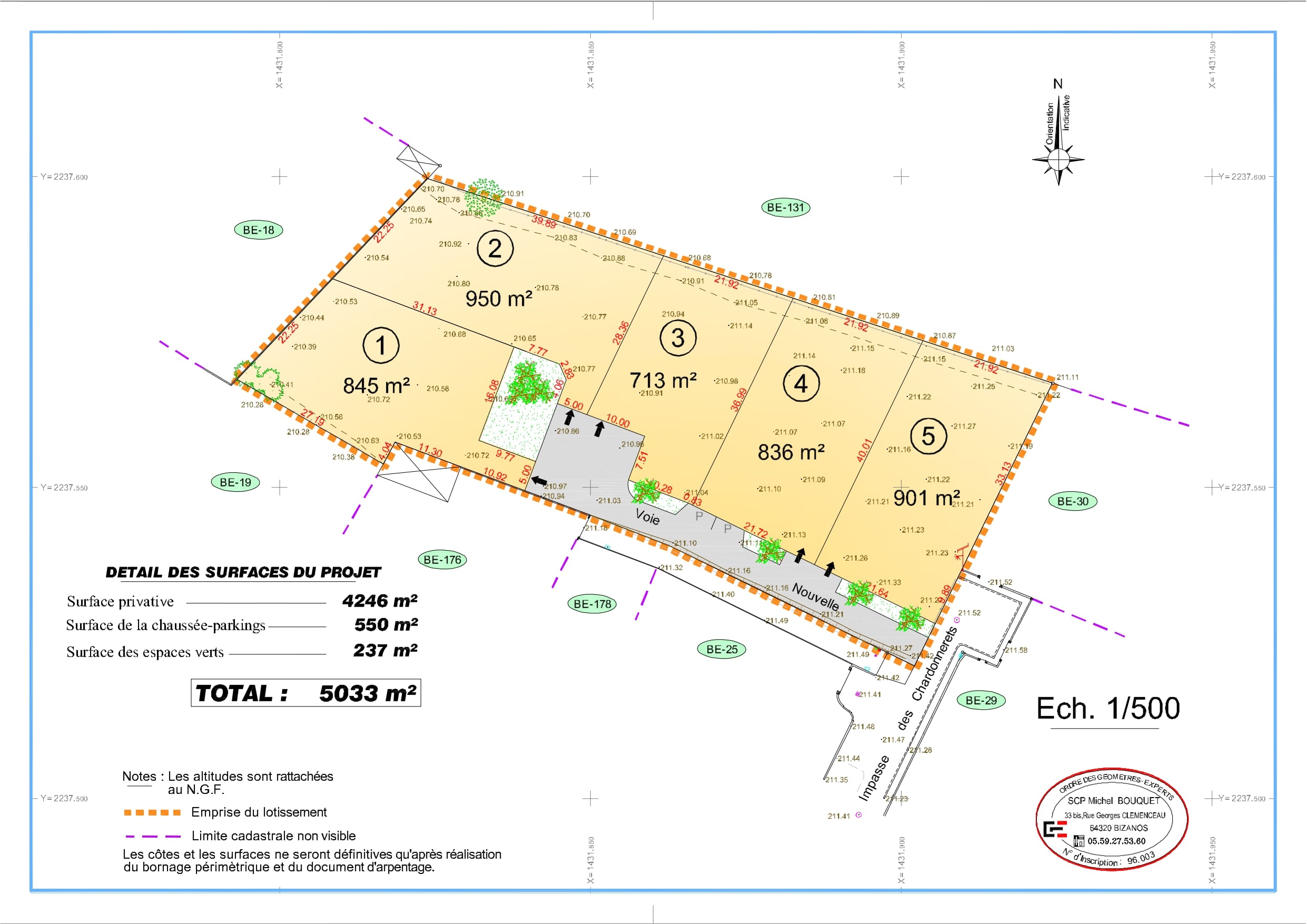 Le lotissement « Les Chardonnerets » propose 5 terrains à bâtir à Idron. Leurs superficies vont de 713 m² à 950 m².