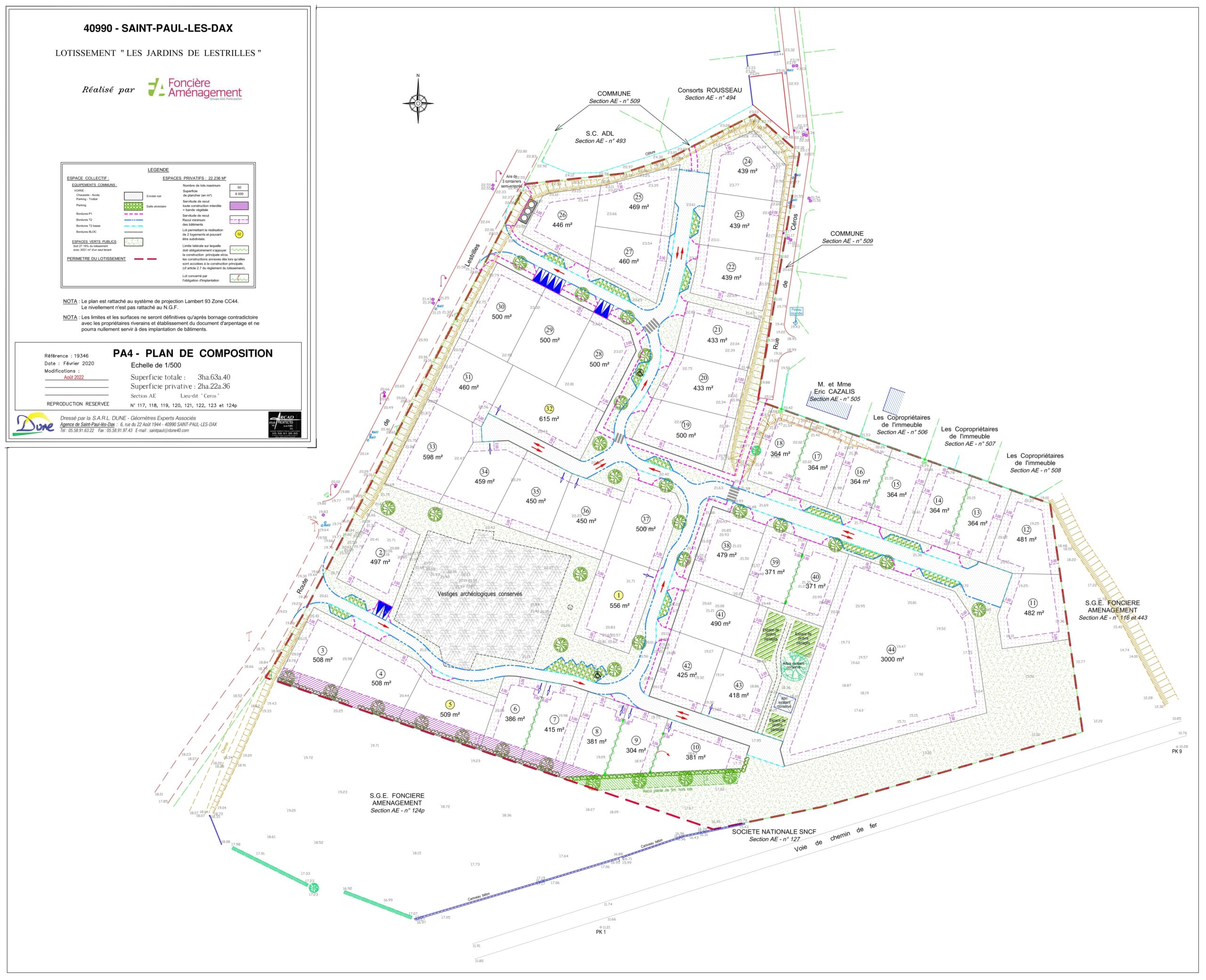 Ce programme propose 44 terrains à bâtir à Saint-Paul-lès-Dax. Les parcelles vont de 304 m² à 615 m², sont entièrement viabilisées, plates et au calme. Elles restent libres de constructeur, laissant ainsi libre cours à vos envies architecturales.